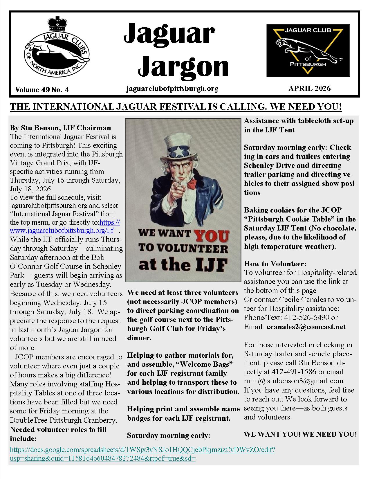 Jaguar Club of Pittsburgh (NC45) 2026 International Jaguar Festival Concours Bryan Williams Ph: 412-996-2416 Fax: |